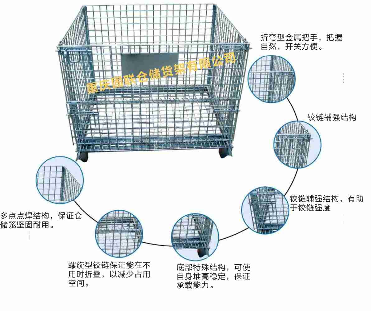 1、操作簡便,應用廣泛,壽命長。 2、規格統一,容量固定,存放一目了然,易于倉庫的清點。 3、可使用叉車、升降機、吊車、相互堆疊四層高,實現立體化存儲。 4、使用強力鋼條點焊而成,底部以U型槽鋼焊接補強,使結構更堅固。 5、配合叉車、臺車、液壓托盤車等設備,可使用于運輸、搬運、裝卸、存儲保管等物流各個環節中。