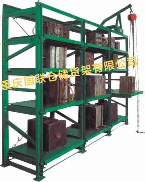 抽屜式貨架主要用于存放各類模具,該貨架除頂層外,其余各層都可拉出,以便于行車吊運。抽屜板底部設有滾輪軌道,抽屜板承載后仍能自由的拉動。 滾輪軌道是用模具一體成型,精度極高,有極高裝配精度,所以滾輪使用壽命大大延長并且使用時拉出或推入很省力。