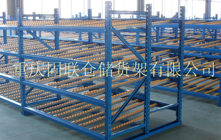 某食品生產廠儲存方式解決方案之--流利貨架,四層,每條設置多條滑道,揀選方便快捷,提高了工作效率。 >>>點擊查看詳情